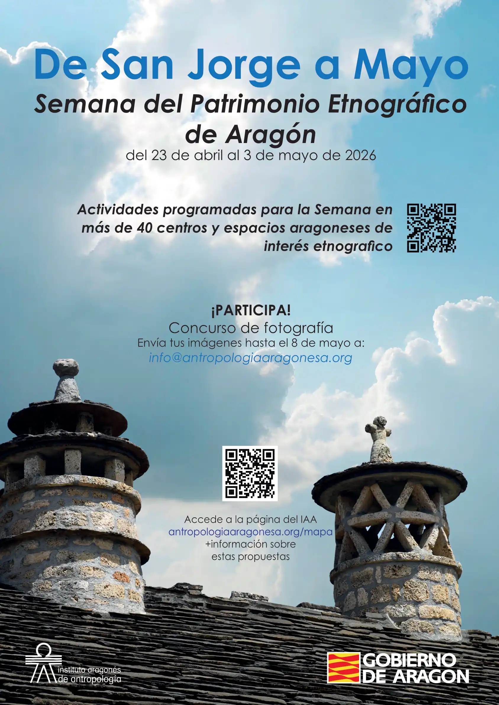 La Dirección General de Patrimonio Cultural del Gobierno de Aragón y el Instituto Aragonés de Antropología, en colaboración con la Dirección General de Cultura, han puesto en marcha la iniciativa ‘De San Jorge a Mayo’, para celebrar la Semana del Patrimonio Etnográfico de Aragón. El objetivo de la propuesta es mejorar el conocimiento y dar visibilidad al rico e interesante patrimonio etnográfico que atesora la comunidad.