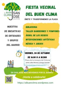 En la celebración de Al Buen Clima San José se arrima 2025, el broche final de un proyecto colectivo que ha tejido saberes, voces y reflexiones en torno al clima y el barrio. Aportando libros como herramienta de cambio, convirtiendo a los vecinos en protagonistas, lectores y autores del barrio que están transformando.