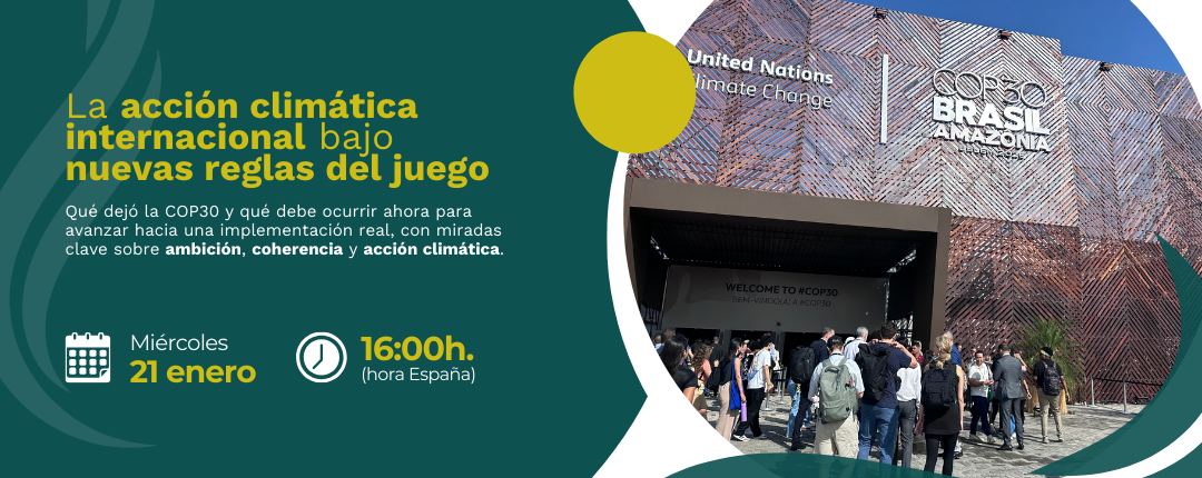 En este contexto, AmbiciónCOP organiza el briefing interactivo «La acción climática internacional bajo nuevas reglas del juego. ¿Cómo mantener la ambición en la implementación en 2026?», que tendrá lugar el 21 de enero de 2026. El encuentro está concebido como un espacio dinámico para analizar con perspectiva los resultados de la COP30 y, sobre todo, para identificar qué debe ocurrir este año para llegar a la COP31, en Turquía, con mayor coherencia, ambición e impulso político.