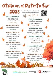 ¡Sí, lo sabemos! Estamos en plenas Fiestas del Pilar y la ciudad rebosa cultura 🎉, pero el otoño también llega cargado de naturaleza, aprendizajes y comunidad en el Distrito Sur.
