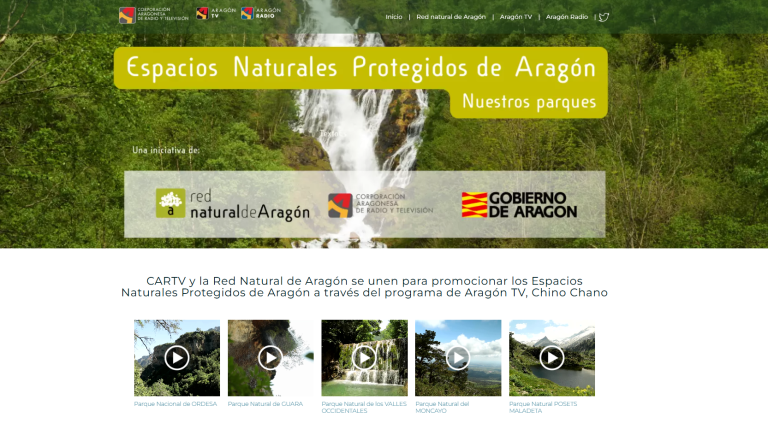 Desde este mes de noviembre, esta web accesible pinchando en el siguiente enlace (web Nuestros Parques) aglutina los contenidos generados, tanto en Aragón Televisión como en Aragón Radio, en los que se ha dado a conocer este año el Parque Nacional de Ordesa y Monte Perdido, el Parque Natural de los Valles Occidentales, el Parque Natural Posets Maladeta, el Parque Natural del Moncayo y el Parque Natural de la Sierra y Cañones de Guara.